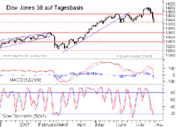 Dow, 12.August: Mittelfristig weitere Kursverluste zu befürchten |